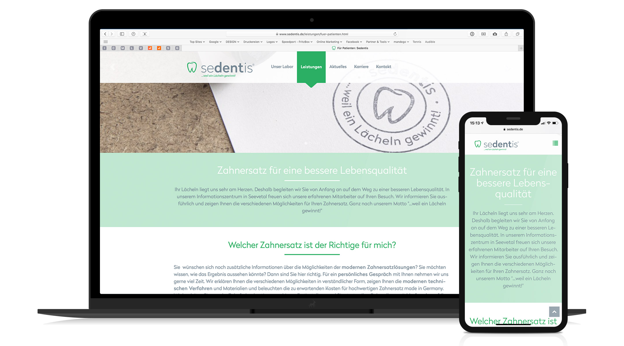 Die Problematik, sollte ein Nachfolger das Unternehmen übernehmen, der Firmenname nicht mehr zeitgemäß ist, war Hauptaufgabe. So entwickelten wir eine Marke, die den Standort „Seevetal“ und die Kernkompetenz „Dental“ in einem Namen transportiert.