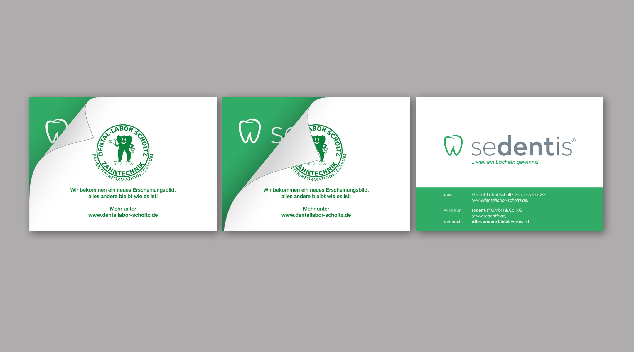 Die Relaunchphase wurde mit äußerster Vorsicht angegangen. Wir haben eine Karte entwickelt, die zuerst das alte Logo mit einer kleinen Ecke vom neuen Logo zeigt. Auf der zweiten Karte war dann vom neuen Logo schon mehr zu erkennen, bis die dritte Karte dann das neue und finale Logo zeigt. Die Bestandskunden sollten nicht den Eindruck bekommen, dass es ein neues Unternehmen ist, sondern das gleiche Unternehmen mit neuem Erscheinungsbild bleibt.